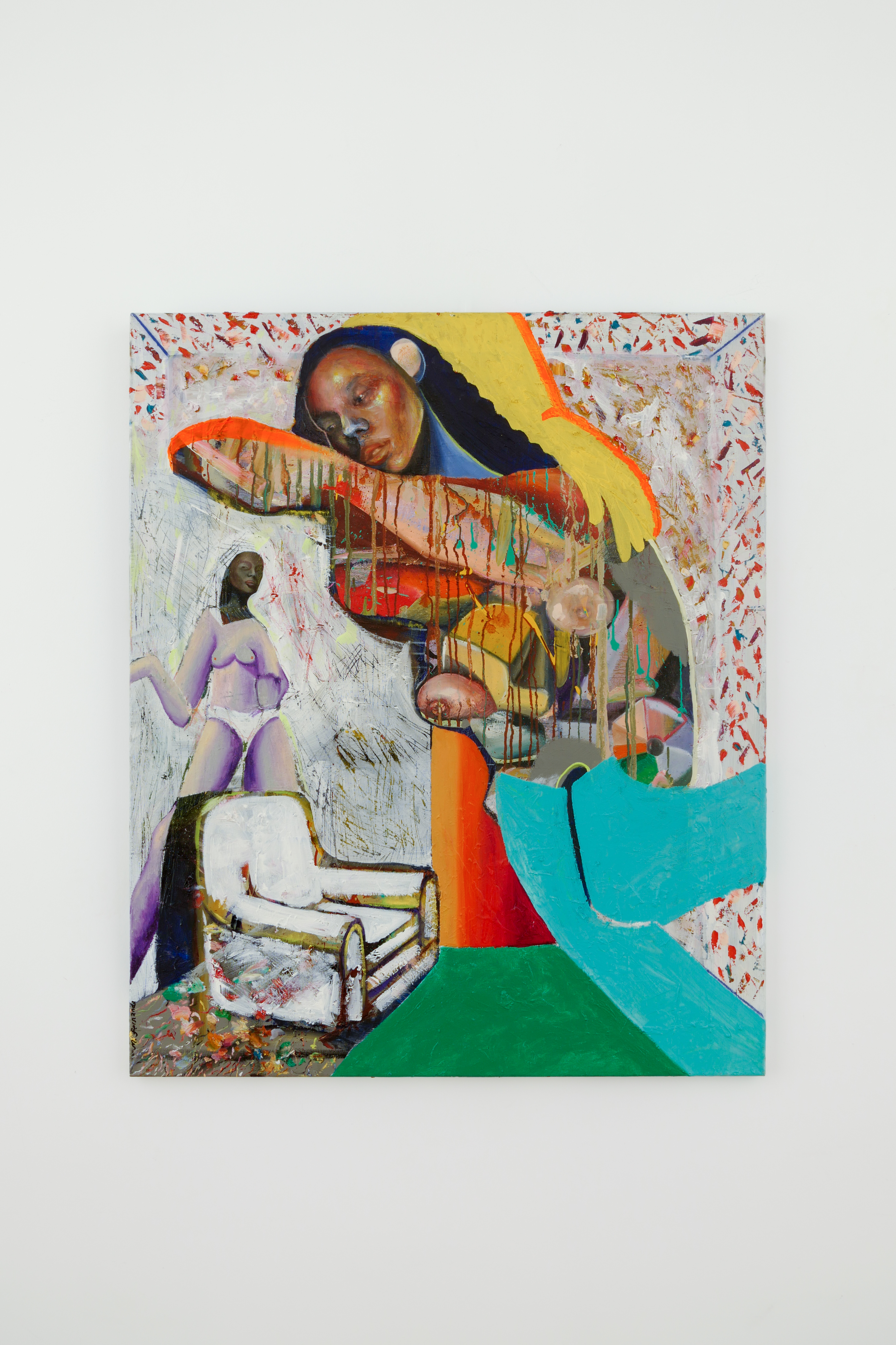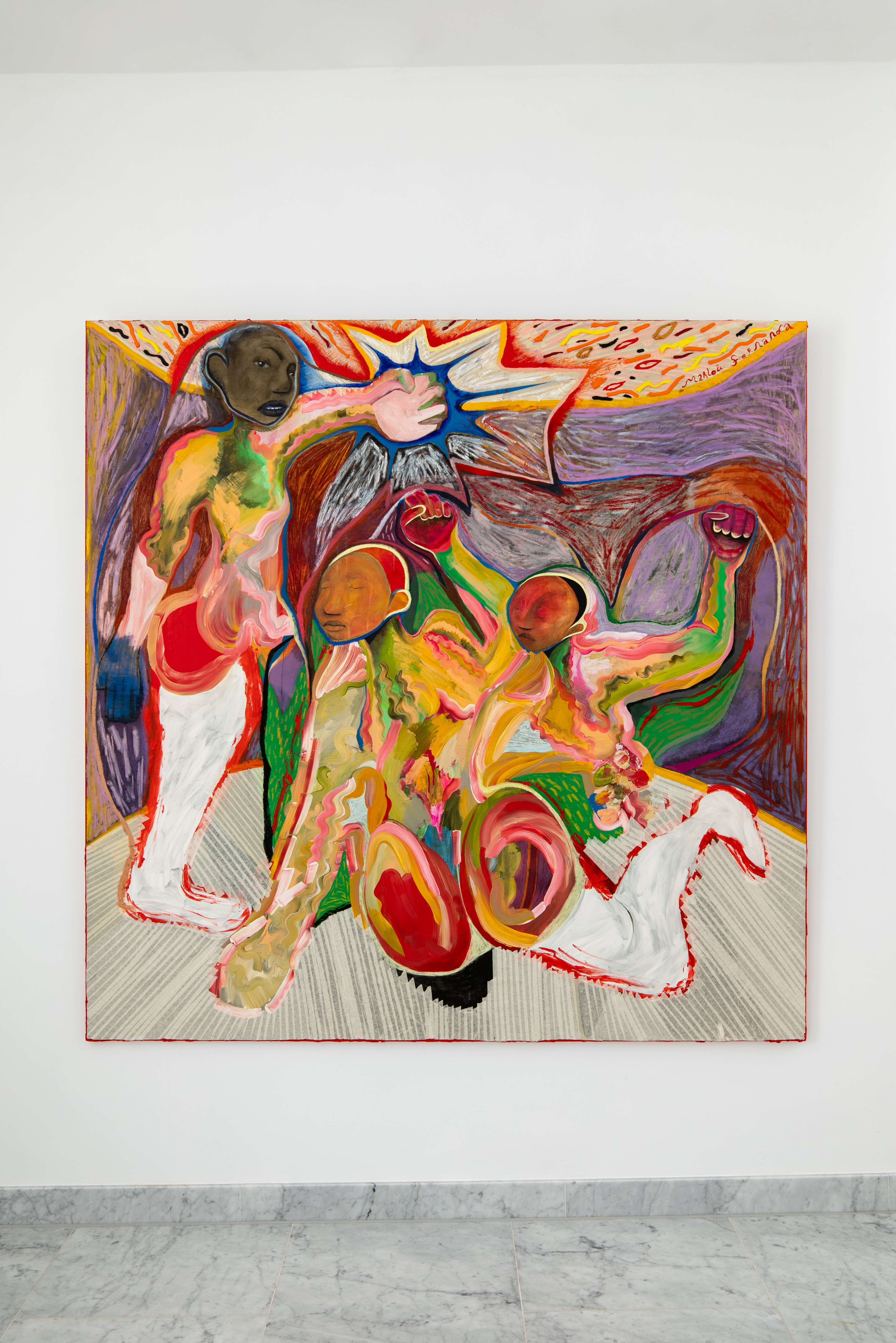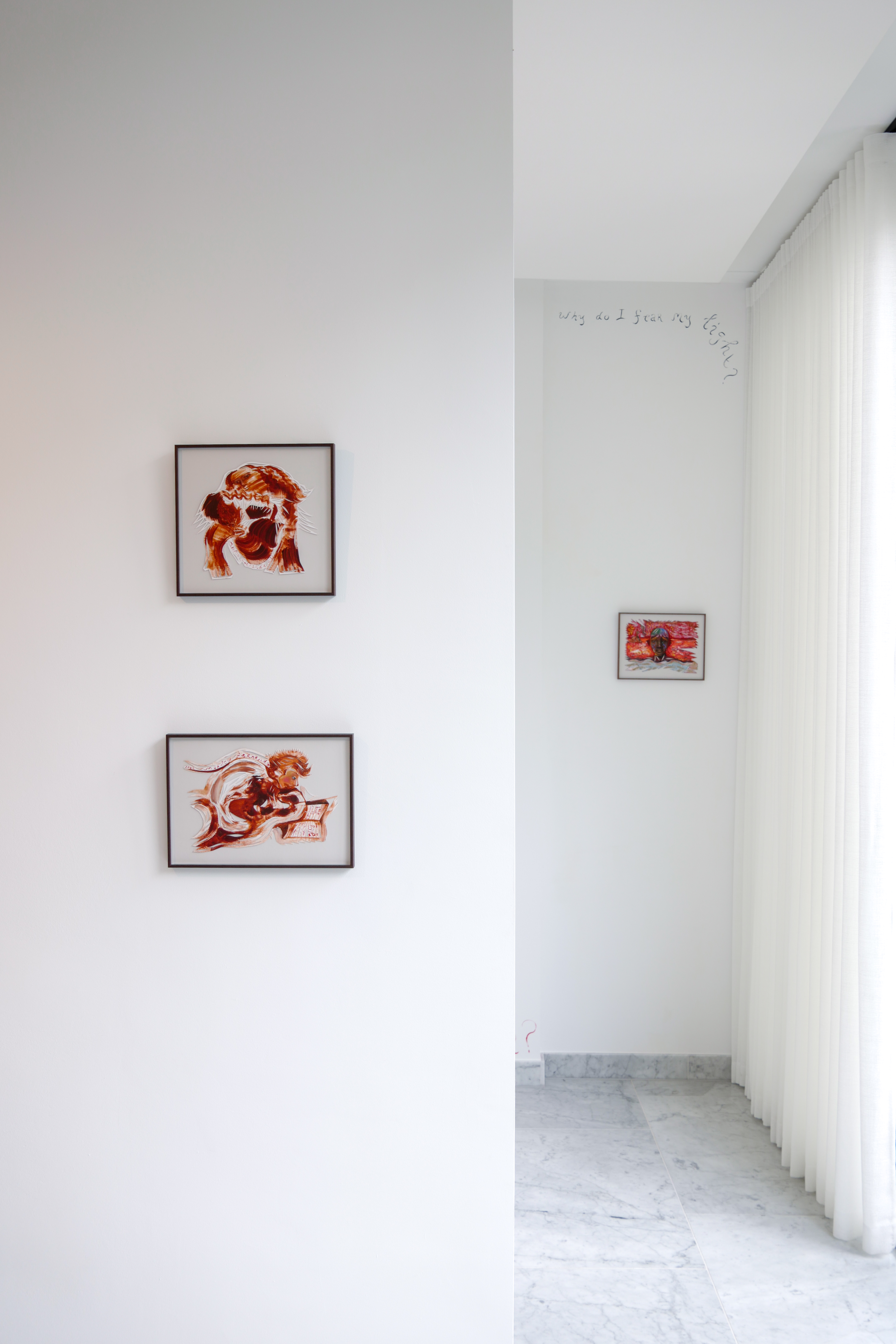 Marlou no longer needs an example and experiences freedom in detaching from reality. She also wants to slowly break free from Nu-Nu. This process is perhaps most evident in the key work of the exhibition Old Answers, New Questions titled No More Pain. “Now that I am healing from everything that happened, I no longer need her.” Her works are no longer driven from pain, they form a clean slate.